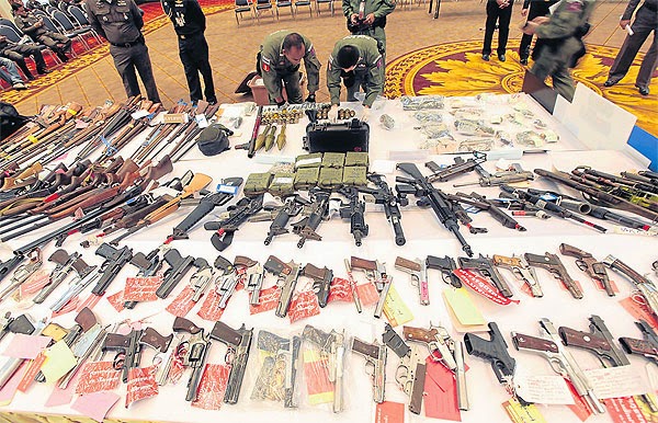 Image: A weapons catch seized by the Thai army from Shinawatra’s armed networks in the wake of the 2014 coup. |