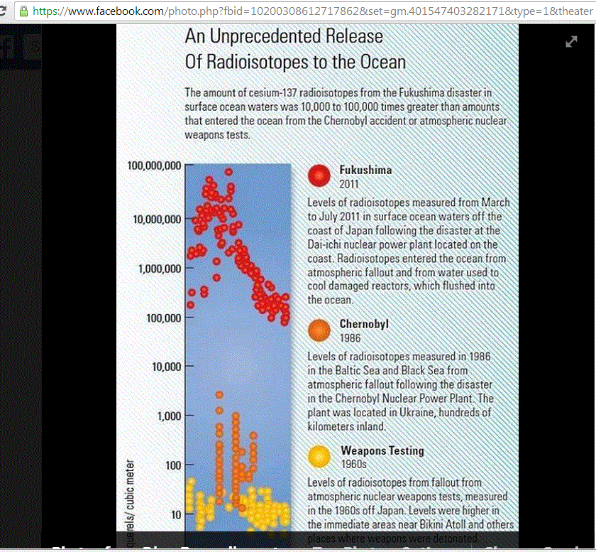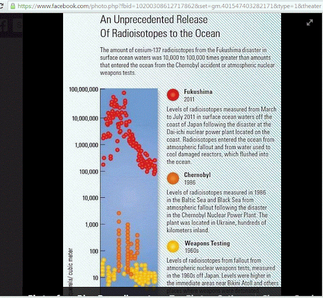 Fukushima Compared To Hiroshima, Chernobyl and 2,400 Open Air Nuclear Bomb Tests, Background Ocean Radiation Levels Pre/Post Atomic Age, Peak Ocean Radiation Level 180,000,000 Bq/m³