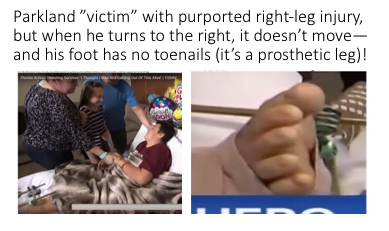 (9b) Student shot in the right leg turns out to be wearing a prosthesis with no toe nails: