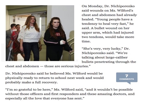 (9c) Maddy Wilford, shot 3 times, has miraculously healed from her most serious wounds: