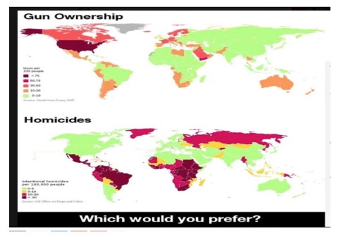That the removal of guns from law-abiding citizens is not in the interest of the American people follows from studies that have shown that gun ownership and homicide rates are inversely related, which means the greater gun ownership, the lower the homicide rate, as multiple studies have shown. John Lott, The War on Guns (2016), makes a very good read about what’s really going on. Consider: